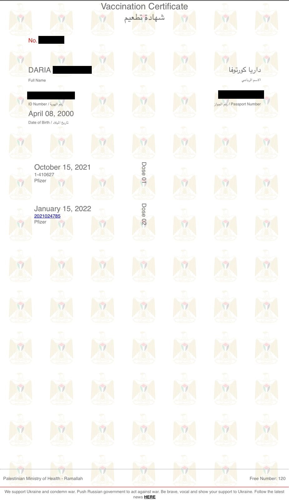 | Название справки | Международный сертификат о вакцинации Pfizer |