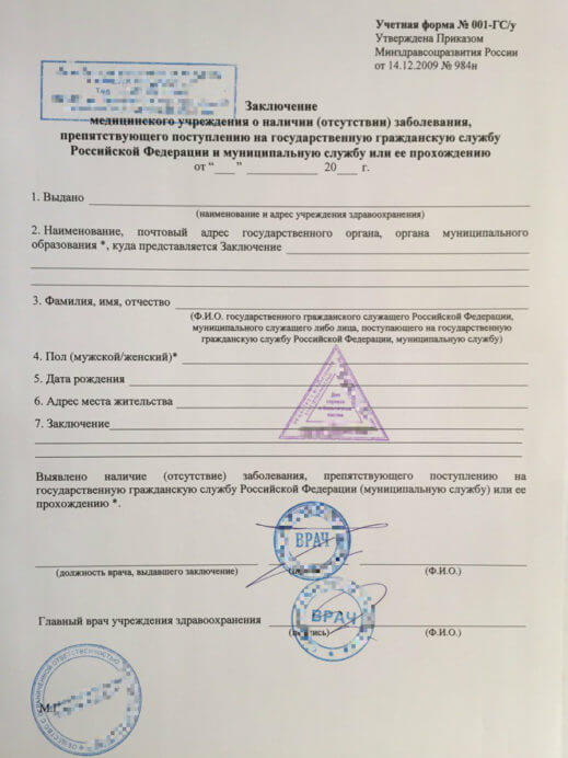 Оформление справки 001 ГС У для госслужащих