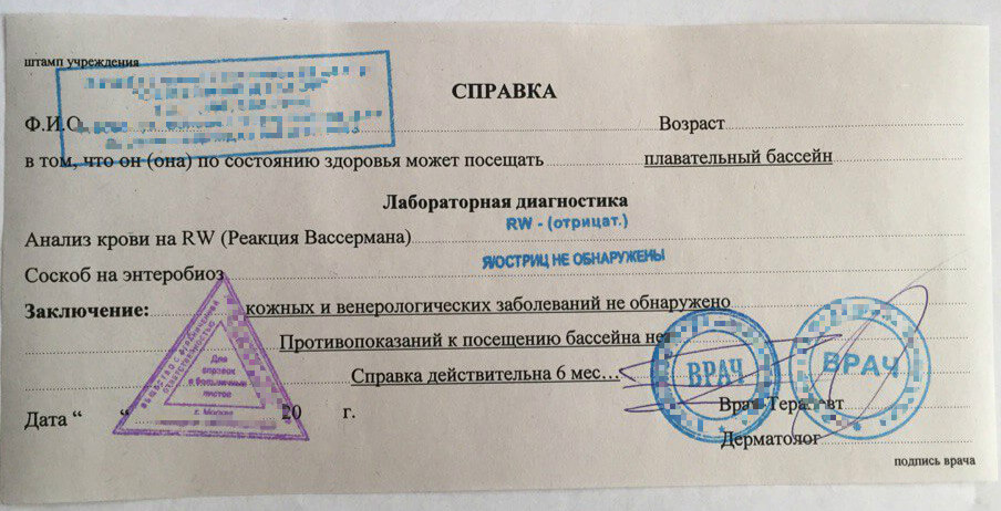 - Купить справку в бассейн ребенку требуется для детей, посещающих уроки плавания, спортивные секции или просто плавающих в бассейне под присмотром родителей.